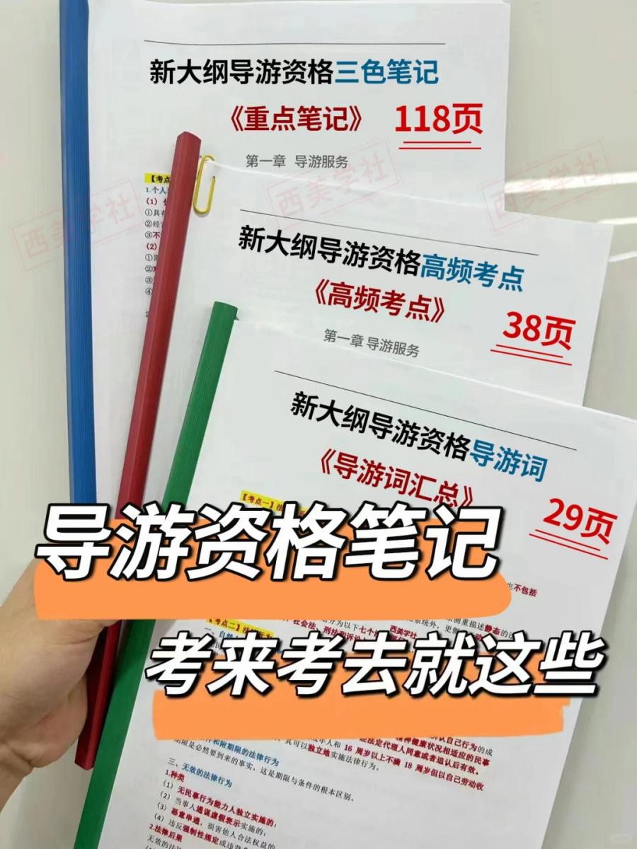 2. 辅助工具:《高频考点速记手册》《历年真题详解》《导游词范文模板》(当地文旅局官网可下载)。